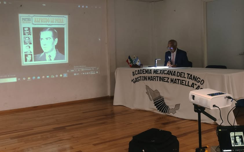 El Academico Correspondiente en México, DF, Vicepresidente de la legendaria Academia de Tango de esa ciudad, SR Raúl Magallón nos cuenta del Homenaje que han realizado a Alfredo Le Pera. Se hizo un repaso por la trayectoria de Le Pera, con algunas fotos y se proyectaron videos de Carlos Gardel con interpretaciones de la autoría de Gardel y Le Pera.